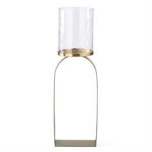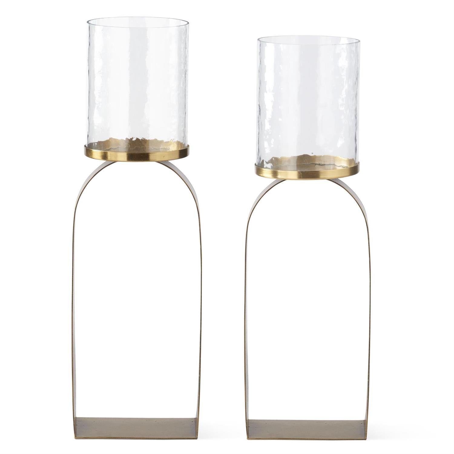 ANTIQUED GOLD & GLASS HURRICANE CANDLEHOLDERS