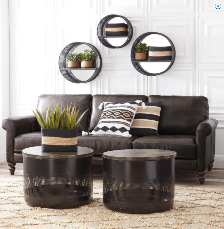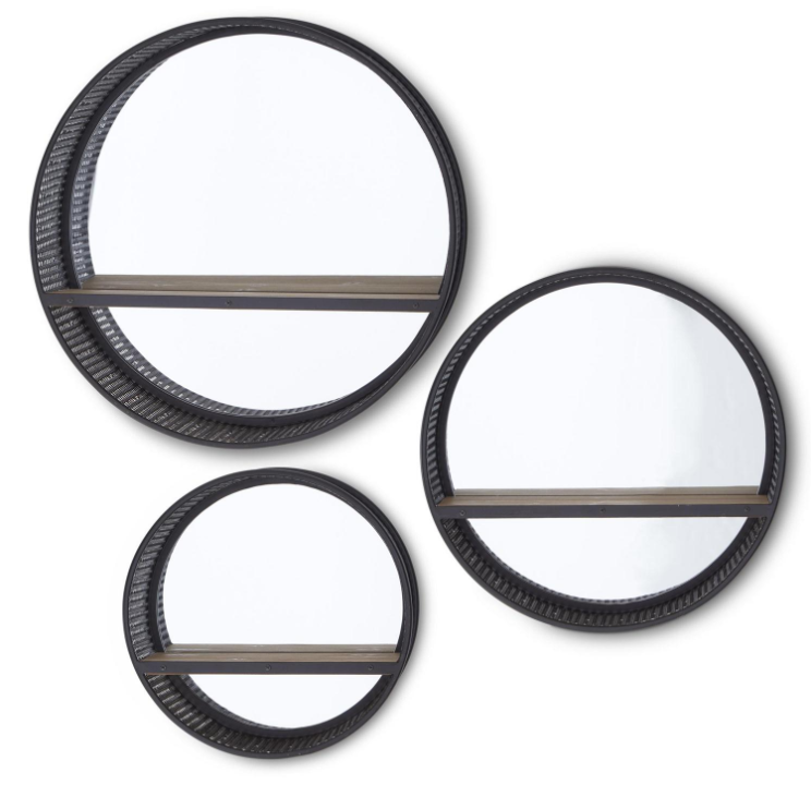 BLACK PUNCHED METAL MIRRORED SHELF