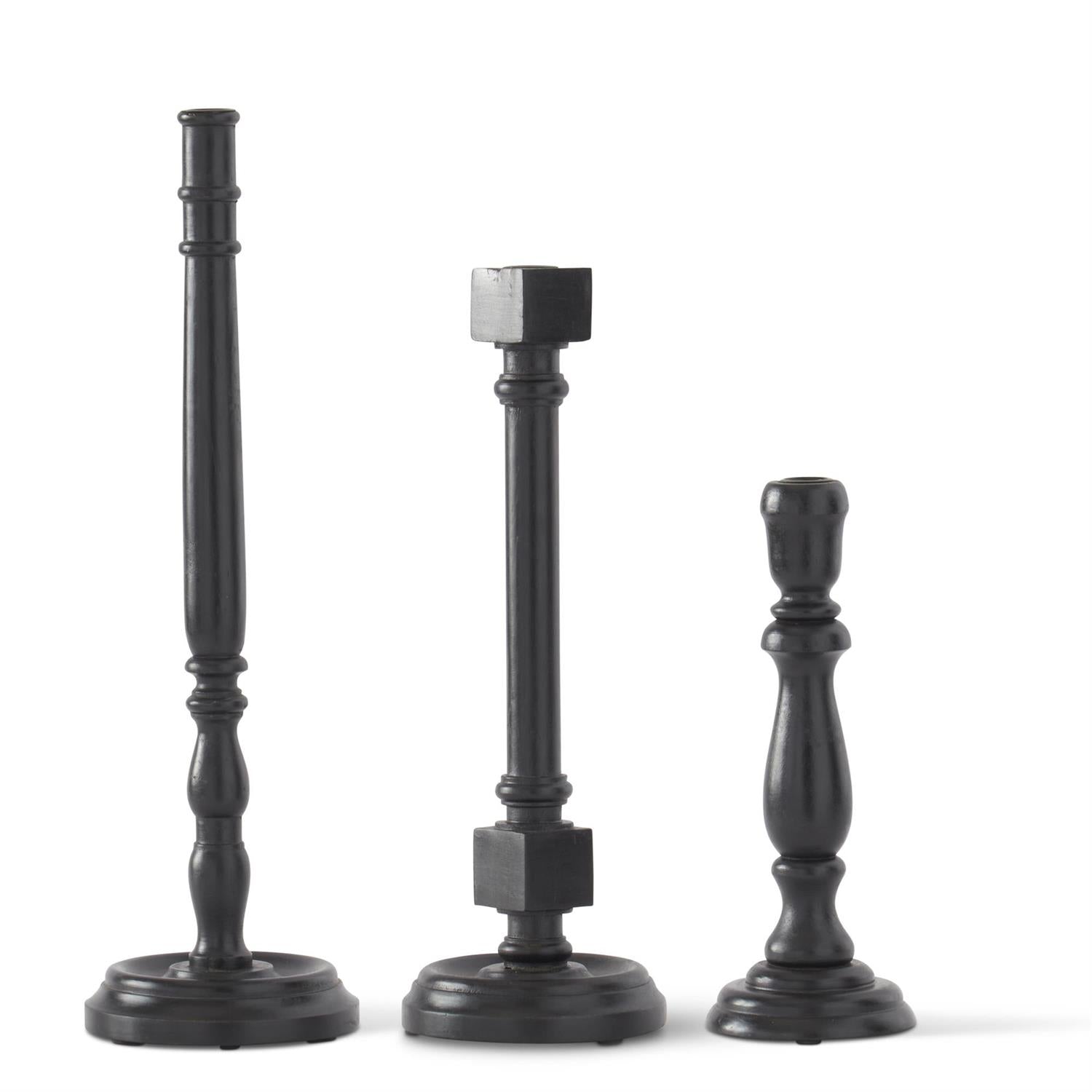 BLACK WOOD TAPER CANDLEHOLDERS