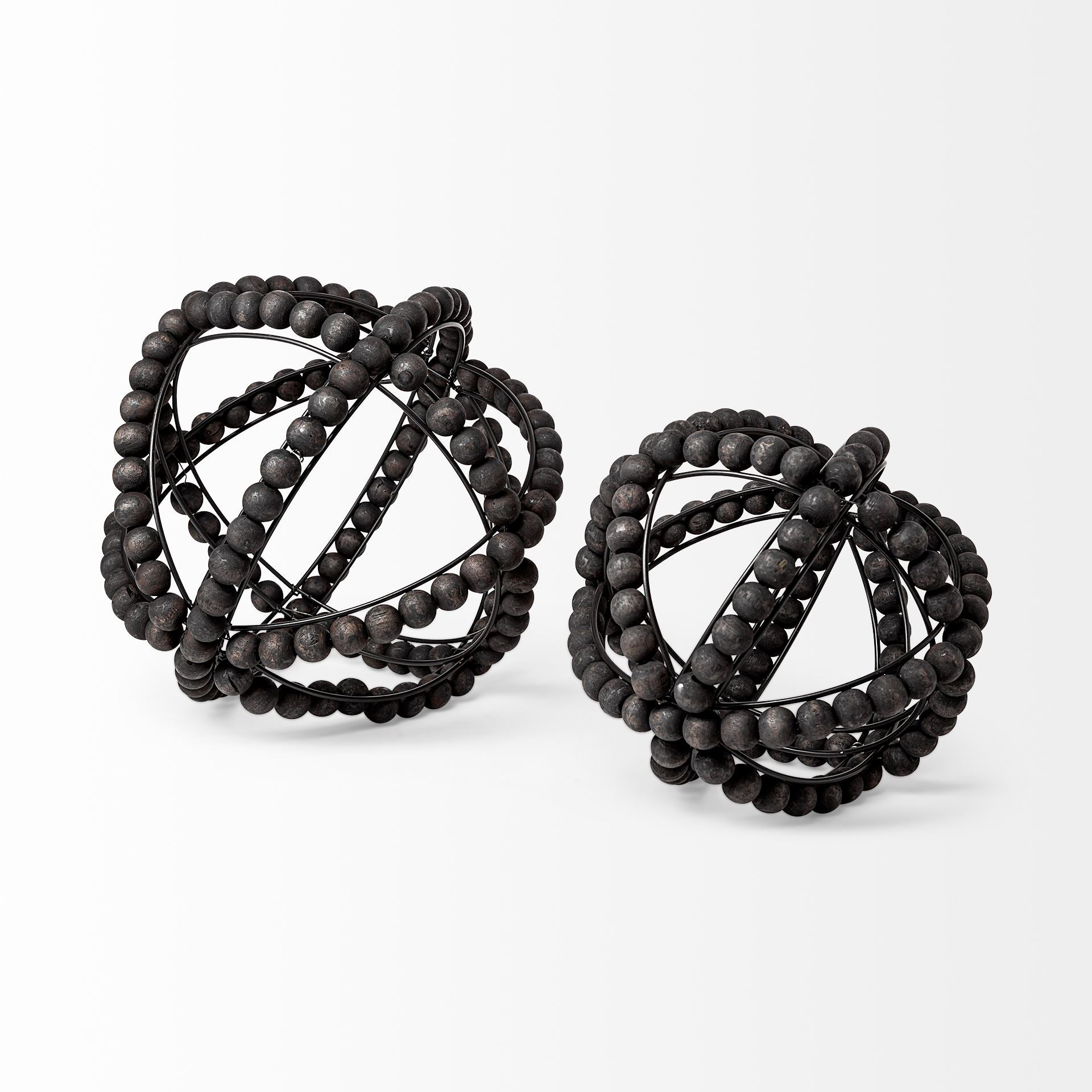 BLACK WOODEN BEADED ORBS