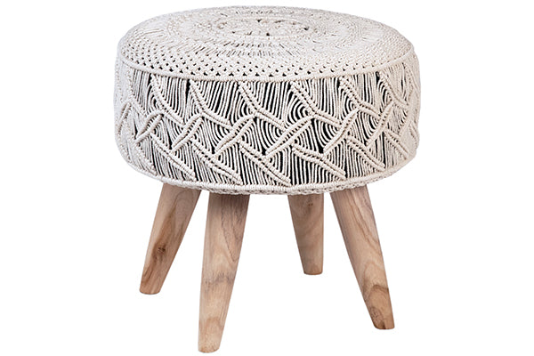 The Bonito Round Stool is handmade with a Cotton Fabric and crafted with Mango Wood legs.