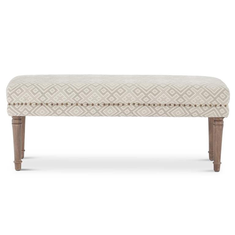 46.25 Inch Cream & White Jacquard Upholstered Mango Wood Bench