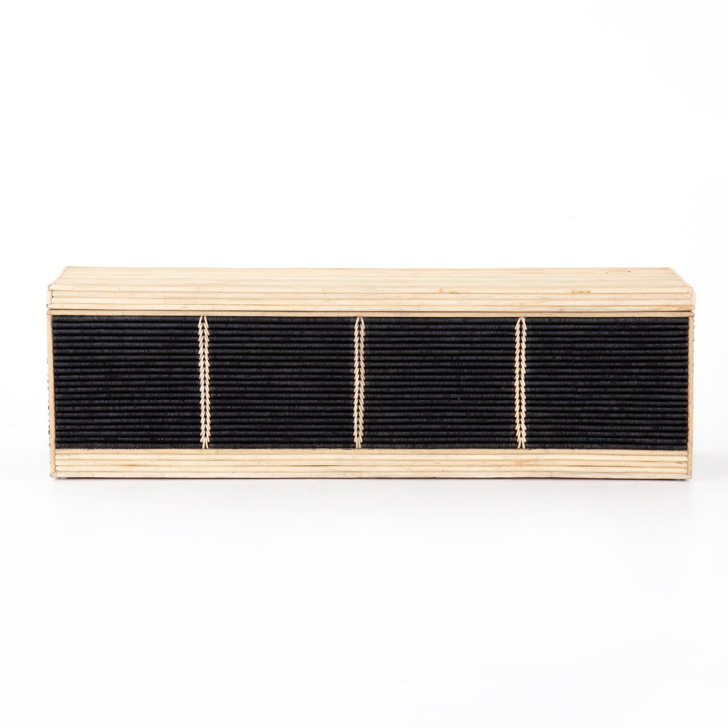 Functional storage adopts a beautifully textured twist. Made from woven black agel and natural rattan, a crisp color contrast deliver a clean look to this cotton-lined trunk, perfect for storing extra blankets, clothing or seasonal décor.