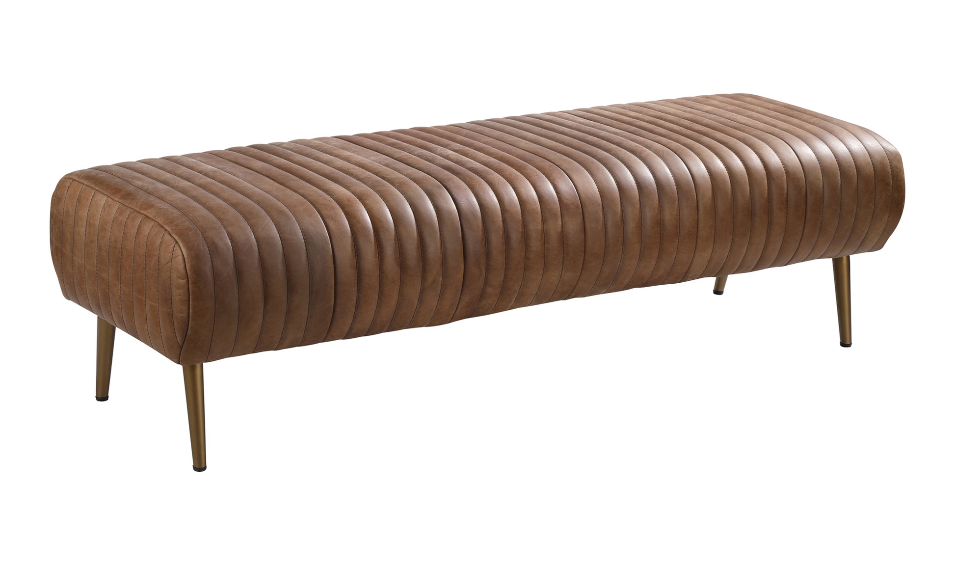 There's no classier place to put on your feet. The Endora bench features a smooth, top-grain cowhide leather in a ribbed style quilting for a sophisticated look and feeling. The matte gold legs just refine the overall aesthetic.