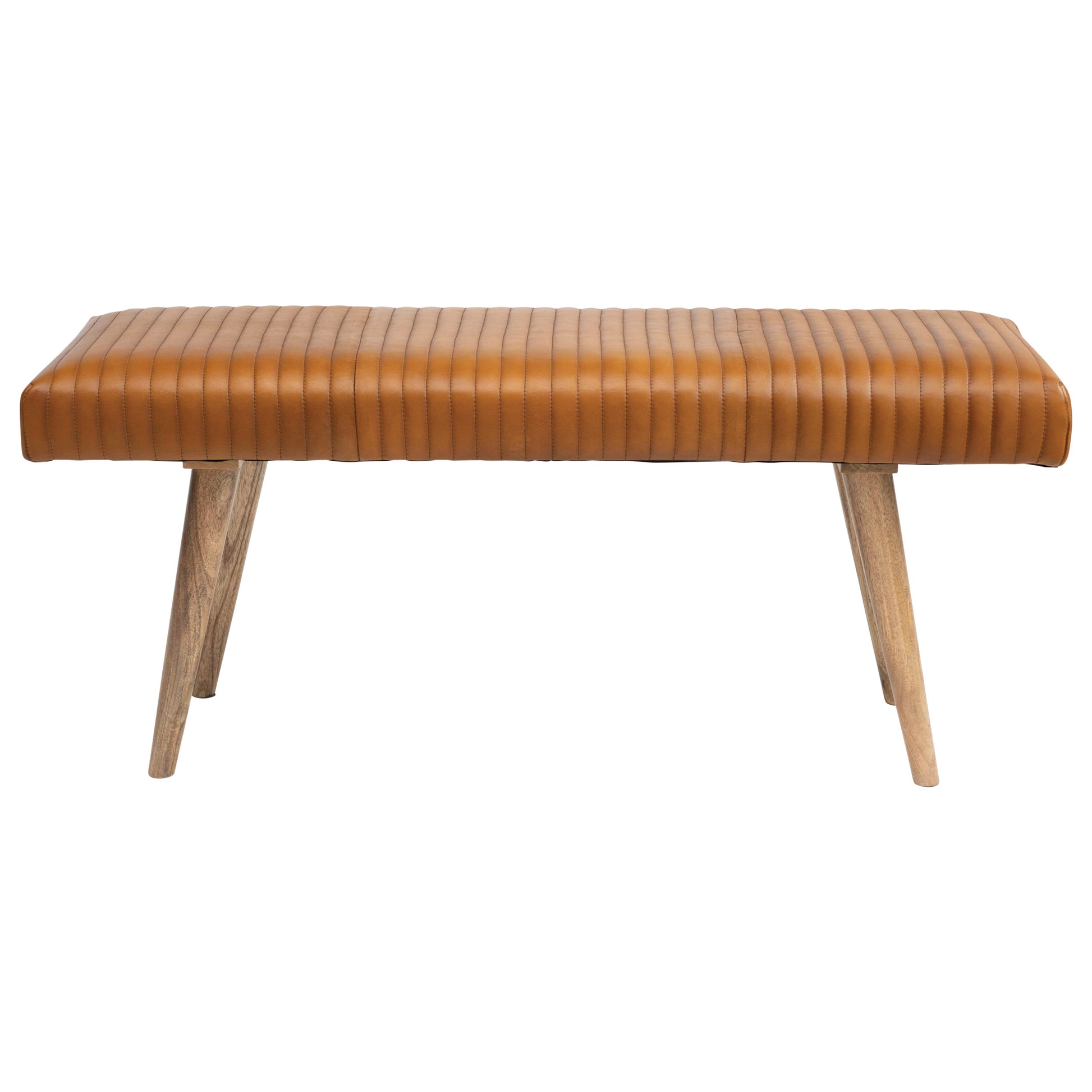 With a brown goat leather seat, this mango wood bench is an attractive yet functional addition to any room decor. Place it at the end of bed and find it the perfect place to sit for putting on shoes and socks. Guests will appreciate it at the end of their bed for keeping their suitcase and miscellaneous items.