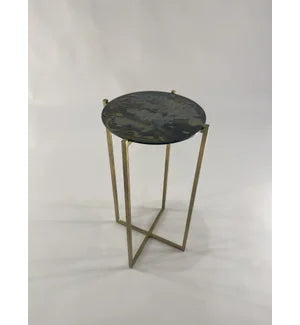 Mia Accent Table in Antique Brass w/Top in Smoky Mountains Finish