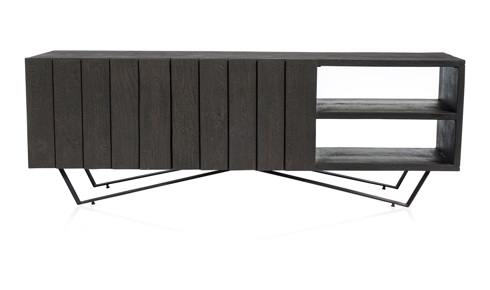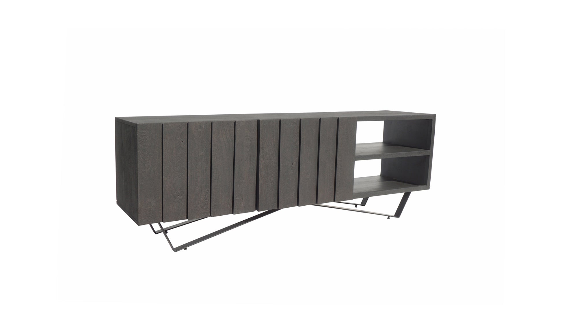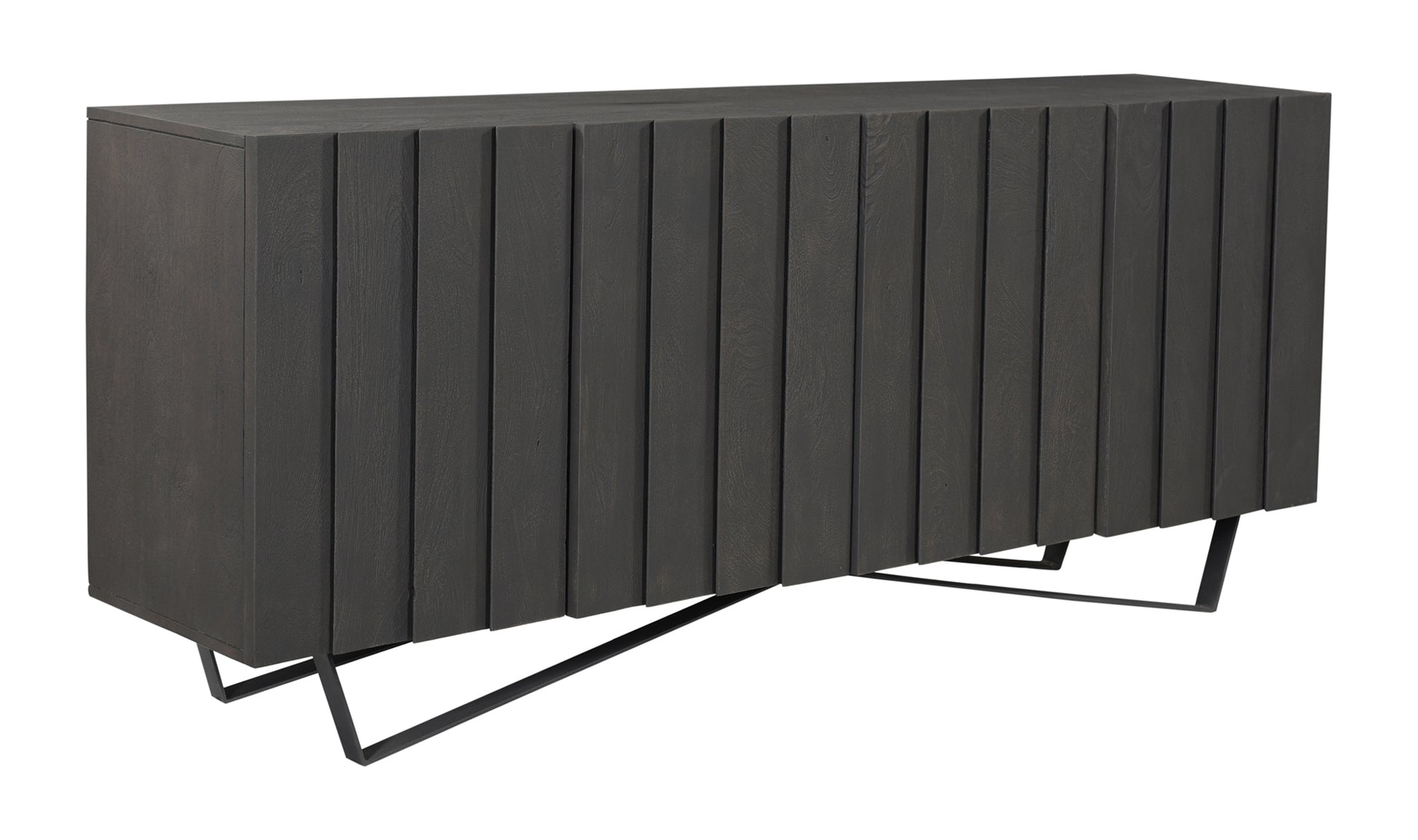 Solid, dark-hued mango wood cuts a dramatic profile, while sturdy iron legs bring sculptural elegance to satisfy those artsy cravings. The Muskrat Cabinet features 4 hidden doors, providing a subtle look for your dining space while still safely storing all your dinnertime items.