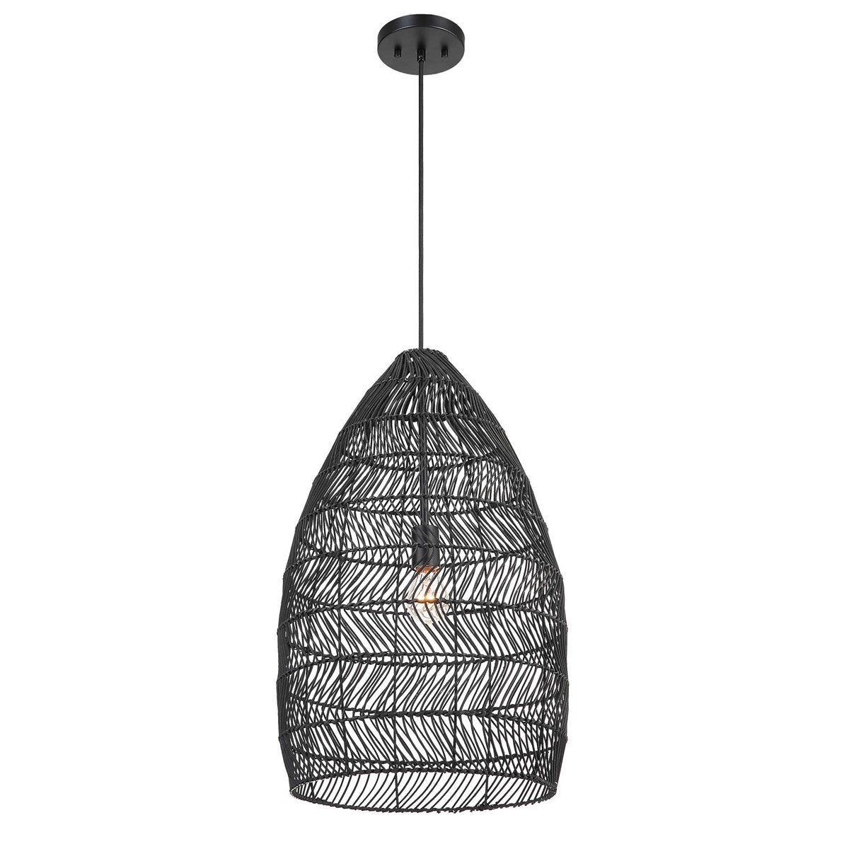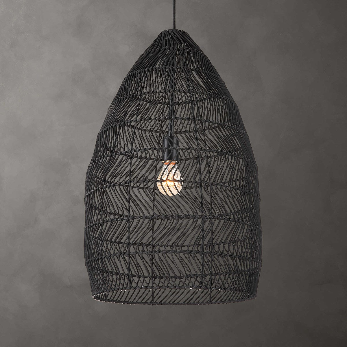 This 1 Lt pendant has a hand woven matte black open weave rattan shade and matte black finish giving an energetic feel. 1-100 watt max Edison socket. Bulb not included. Supplied with 15' black fabric cord for adjustable installation.