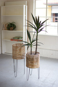 ROUND SEAGRASS PLANTERS WITH IRON BASES