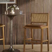 Mixed materials make the chair. Solid natural beech wood features a natural cane back for extra texture, while a butterscotch-finished faux leather seat serves total comfort.