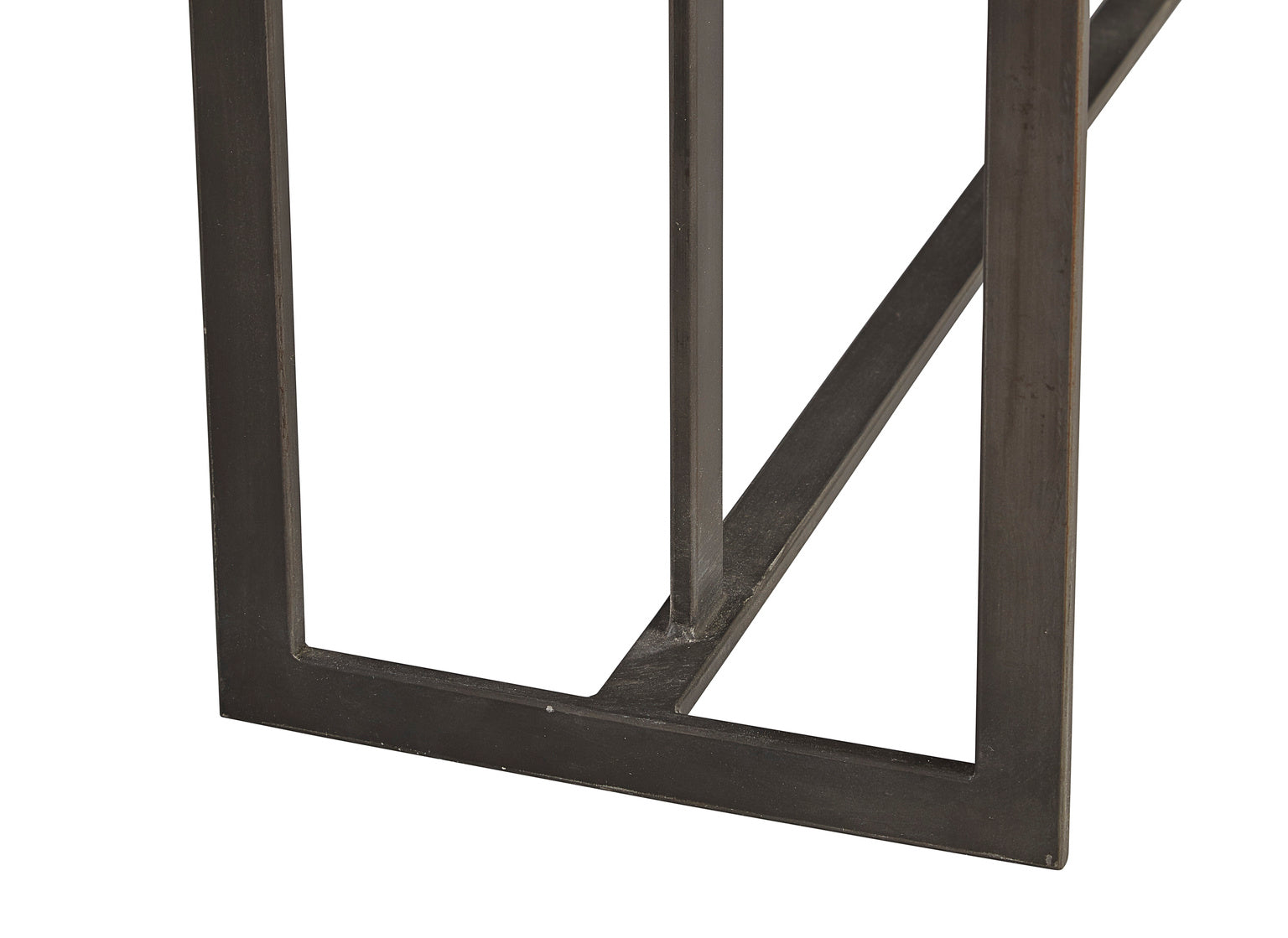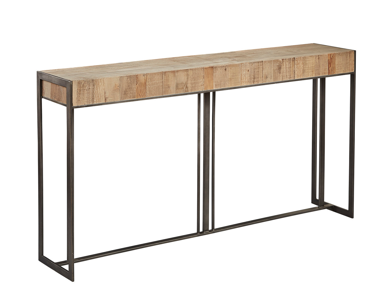 "Less is More" is more than just a saying when it is applied to the design of this amazing console. Stripped to the barest essentials, this console is made beautiful by the contrast of weighty pine timbers and the slender iron base. This beauty is scaled to work in any space.