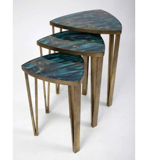 Hand-painted and hand-blown glass top. Base is finished in a multi-step process to achieve the color.