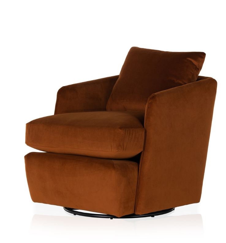 A comfortable classic. Atop a 360-degree swivel, velvety rust upholstery places a plush twist on a traditional style, with feather-blend cushioning that welcomes a sit.
