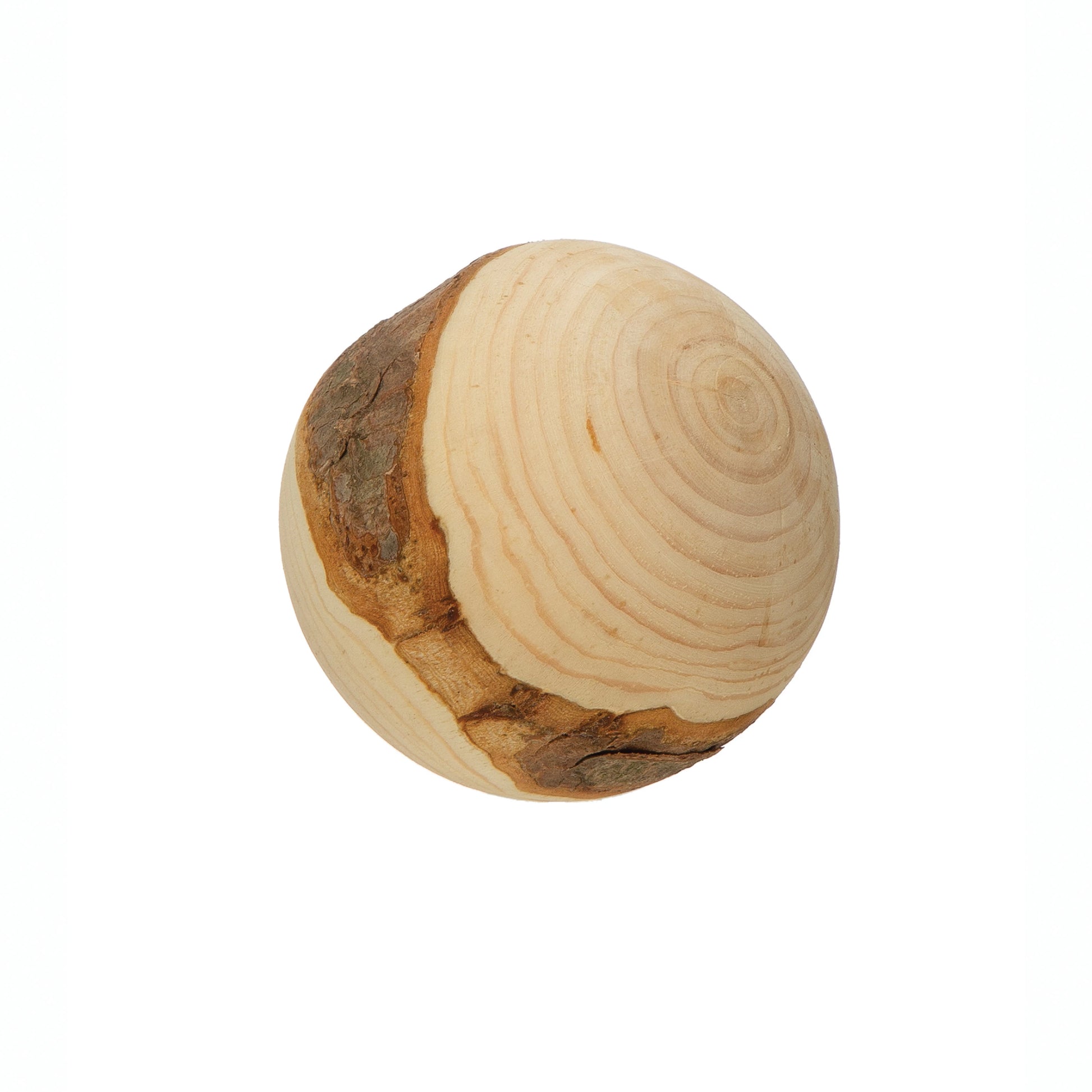 This wood orb is a fun accent piece to add dimension to a space.